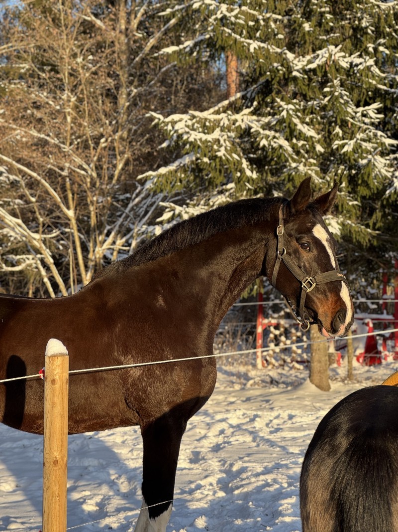 Last year, he competed successfully in ABC2 dressage tests as well as in the Young Horse Dressage Championship, where he scored 70% in the tests. This year, he achieved 69% in the A1 test. He is a quick learner and shows great potential in dressage, while also having an eye-catching and effective appearance that draws attention.